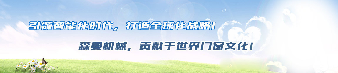 “森曼機(jī)械”作為全球門窗設(shè)備供應(yīng)商,本著"seaman"精神,勇立潮頭,拼搏創(chuàng)新,以爭(zhēng)做行業(yè)為目標(biāo),在行業(yè)前輩發(fā)展的基礎(chǔ)上,努力學(xué)習(xí),積極進(jìn)取。目前公司產(chǎn)品涵蓋塑料門窗設(shè)備、鋁合金門窗設(shè)備、鋁幕墻設(shè)備、鋁木復(fù)合門窗設(shè)備及中空玻璃設(shè)備五大種類,近百個(gè)品種。公司產(chǎn)品銷售至全國(guó)各地及東南亞、非洲、東歐、北美等幾十個(gè)國(guó)家和地區(qū)。在這個(gè)競(jìng)爭(zhēng)激烈的年代,我們正努力使我們的產(chǎn)品!